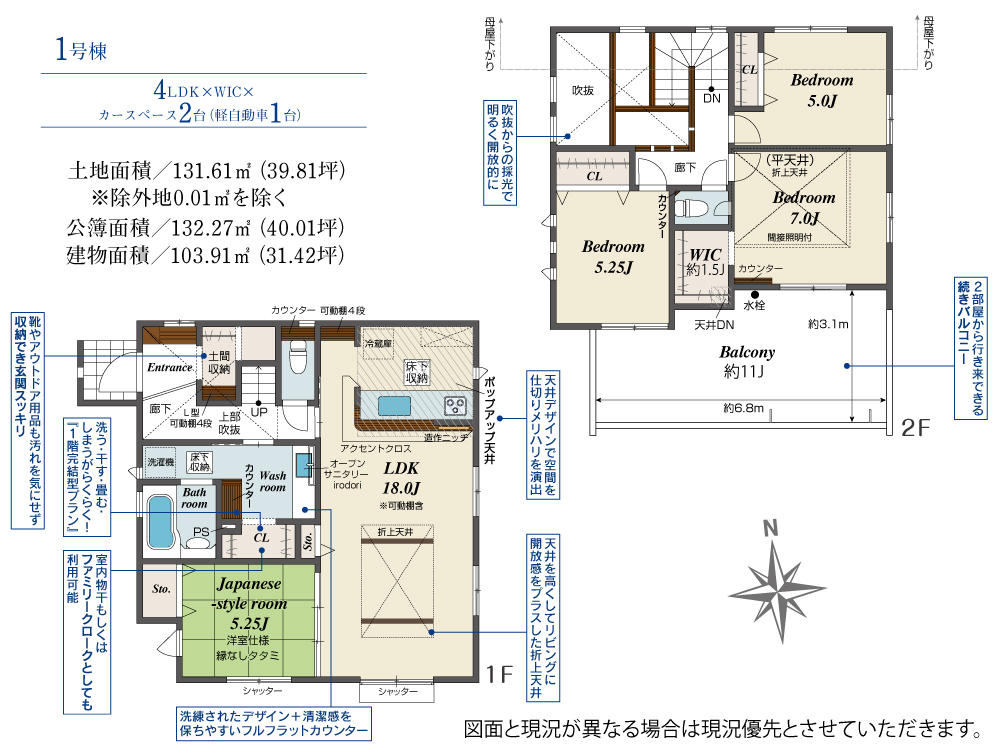 | 建物面積 | 103.91m2(約31.43坪) | 土地面積 | 131.61m2(約39.81坪) |