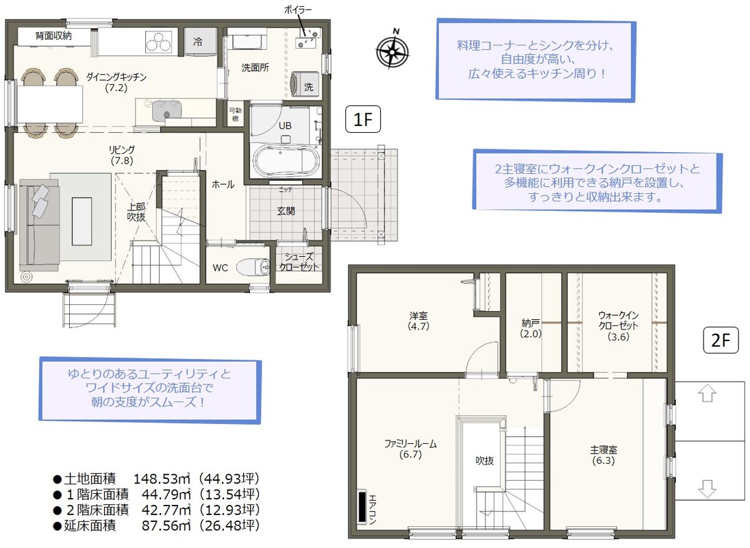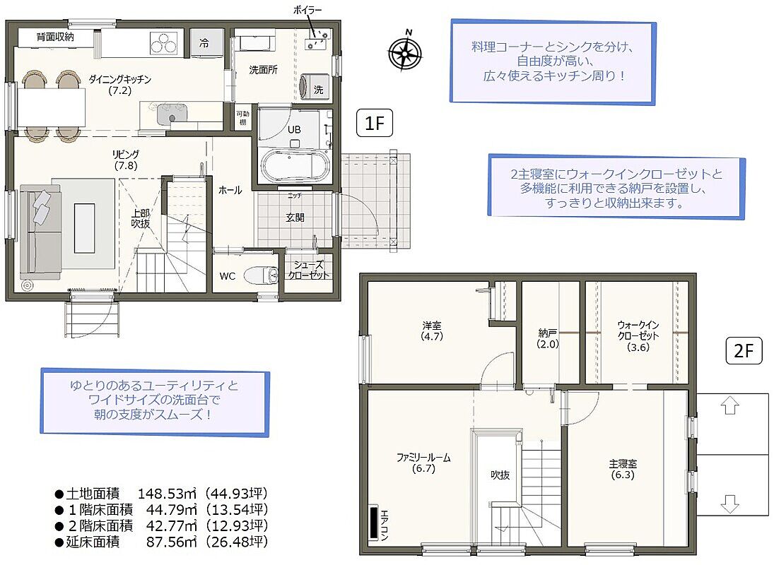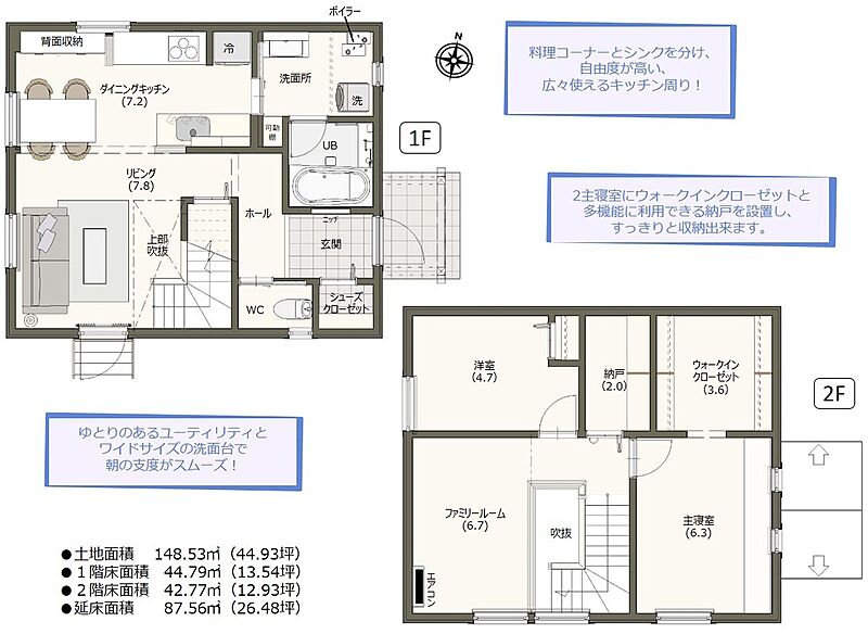 | 建物面積 | 87.56m2(26.48坪) | 土地面積 | 148.53m2(44.93坪) |