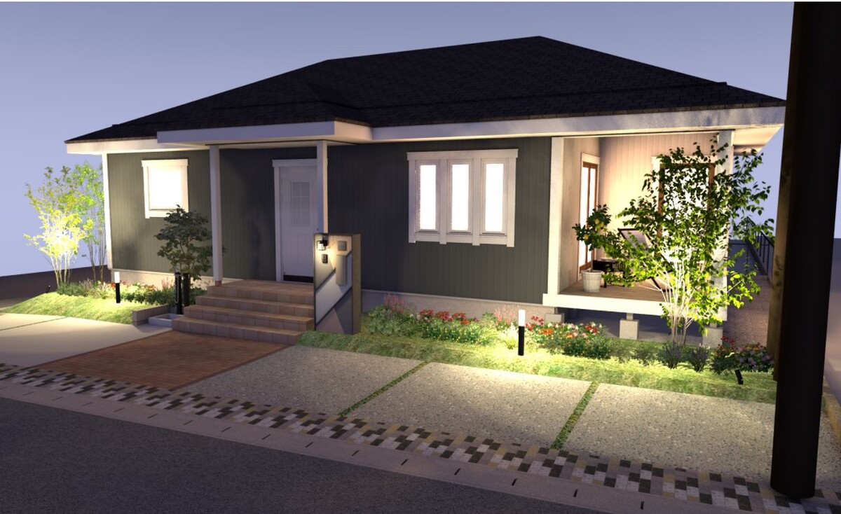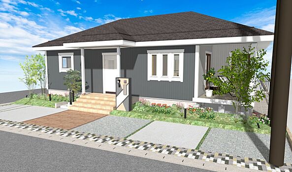 角地に建つ平屋の分譲住宅が建築中!ルフトデッキでコーヒータイムを楽しんでみてはいかがですか。