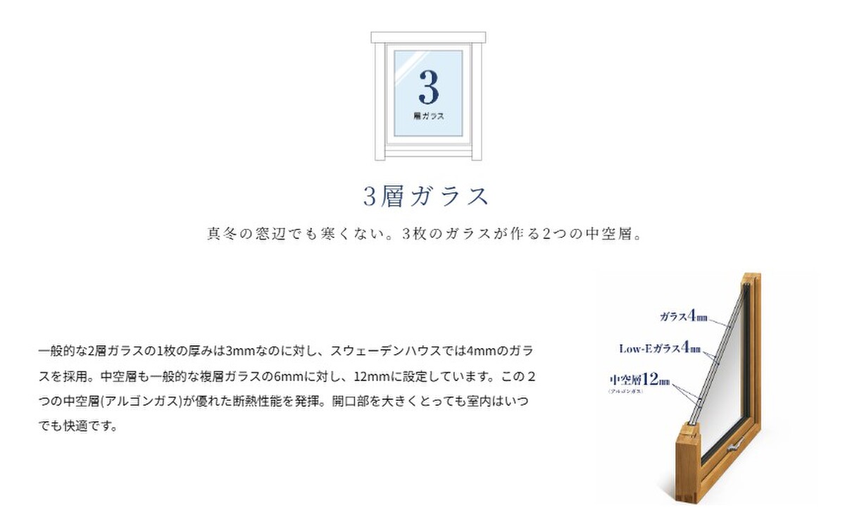 「木製サッシ3層ガラス窓」を標準採用。高断熱高気密に加え、遮音性・防犯性も兼ね備えたスウェーデンハウスオリジナル窓です!