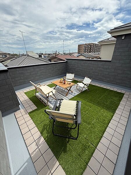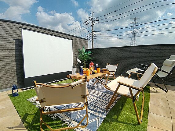 広~いルーフバルコニー付き!第二のリビングとしてバーベキューやガーデニング、お子さんとのプール遊びや映画鑑賞、ドッグラン等使い方色々お楽しみ頂けます。