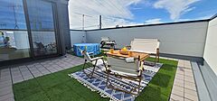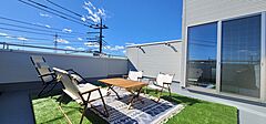 約11帖の広々屋上付き!第二のリビングとしてバーベキューやガーデニング、お子さんとのプール遊びや映画鑑賞、ドッグラン等使い方色々お楽しみ頂けます。屋上には水道・屋外用コンセント・照明が標準装備!