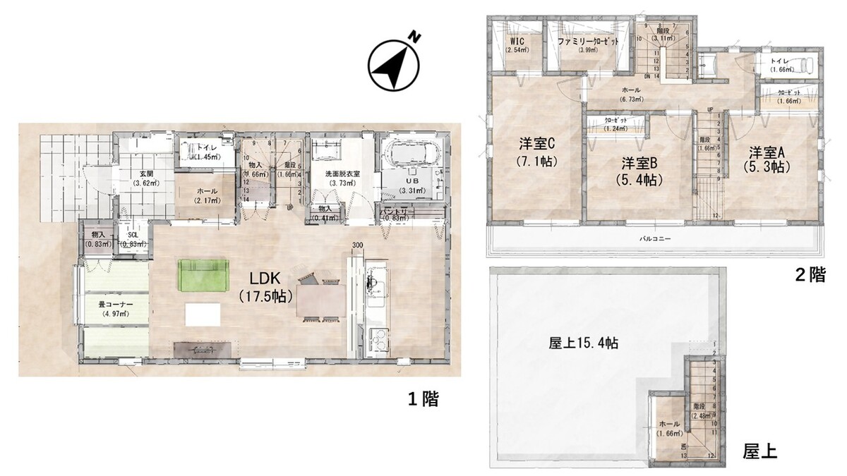 新築一戸建て 「屋上のある家」【土地57.8坪の南東・南西の角地・パントリー・ファミリークローゼット】