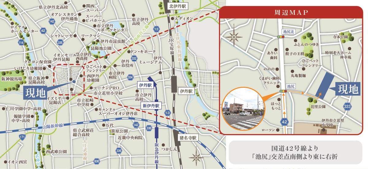 阪急伊丹線「伊丹」駅 伊丹市営バス21分「池尻南口」バス停 徒歩3分~4分 |