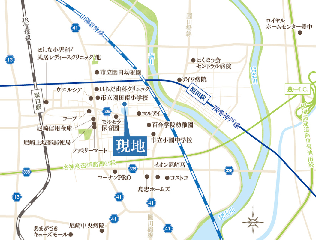 阪急神戸本線「園田」駅 徒歩16分 JR福知山線「塚口」駅 徒歩19分 |