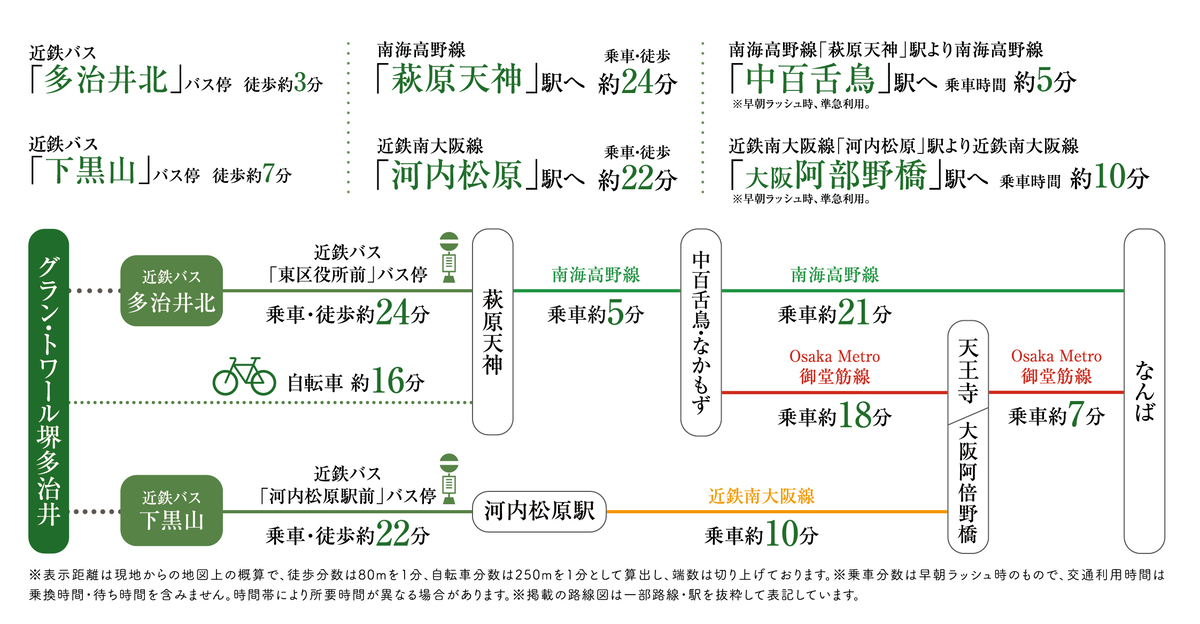 - 南海バス「多治井北」バス停 徒歩3分~4分