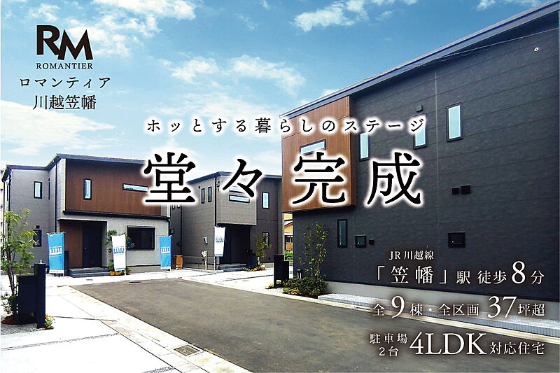 JR笠幡駅まで徒歩8分。安心と心地よさが同居する分譲地が誕生。全区画土地面積は37坪以上。総9区画の街です。駐車スペースは2台以上可能。新築分譲住宅は3,480万円~。