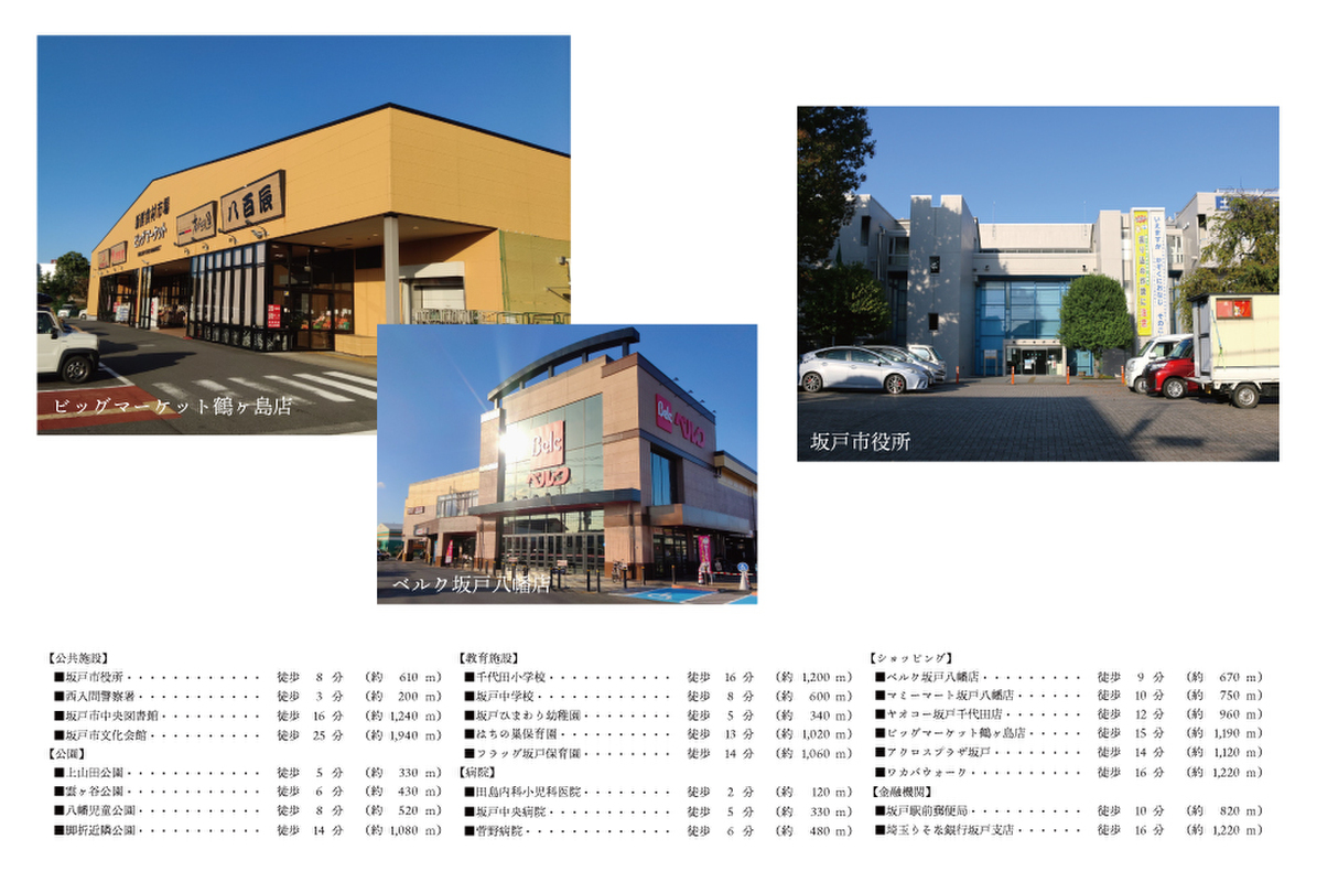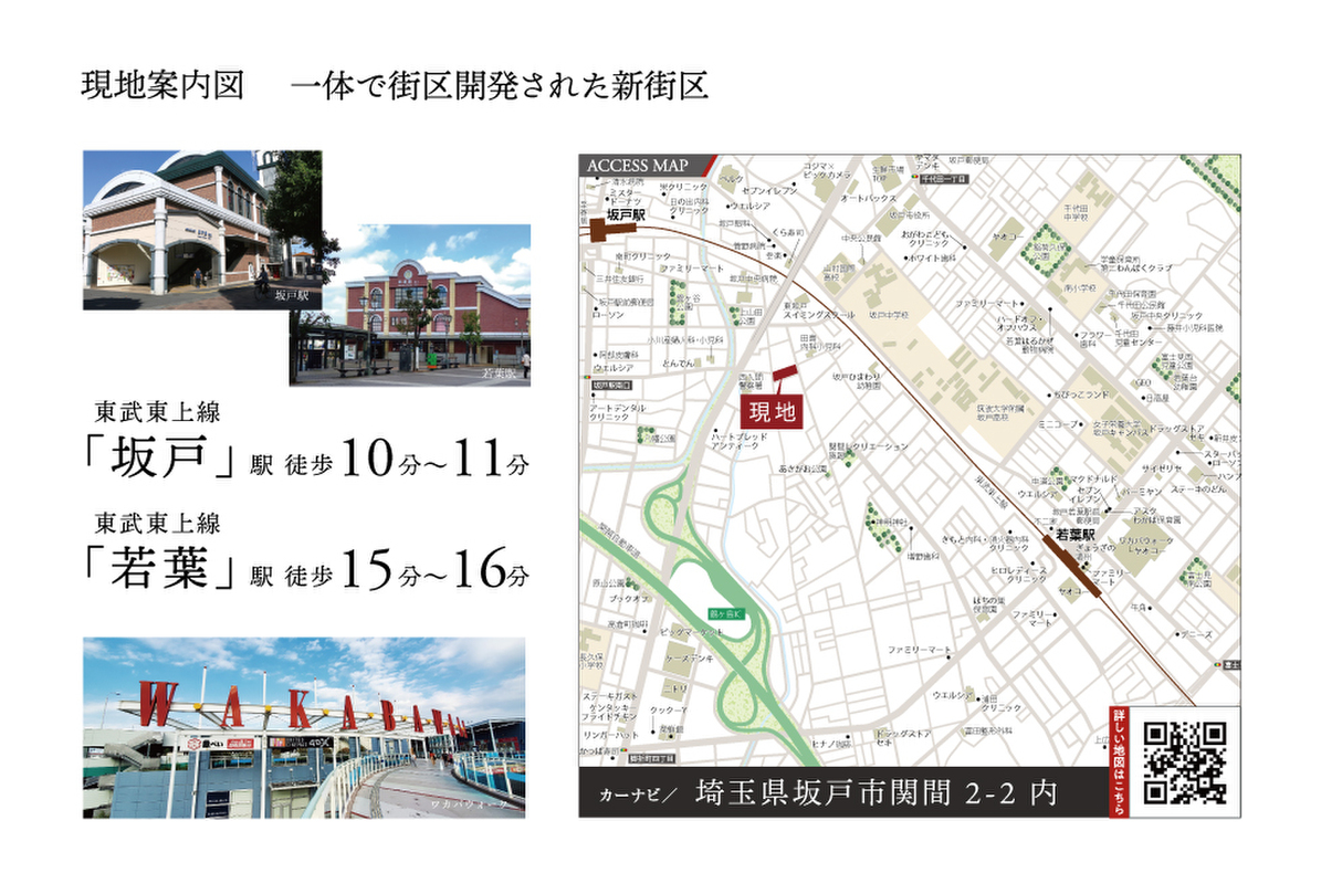 東武東上線「坂戸」駅 徒歩10分~11分 TJライナー・川越特急停車駅 東武東上線「若葉」駅 徒歩15分~16分 急行停車駅 |