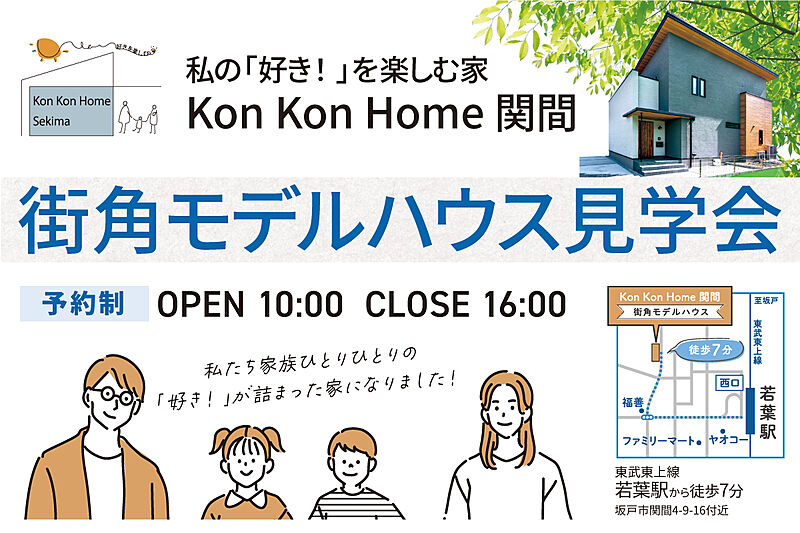 | モデルルーム情報 | 分譲地から徒歩8分の場所(坂戸市関間4-9-16付近)に街角展示場と住まいの相談所をご用意しています | ||