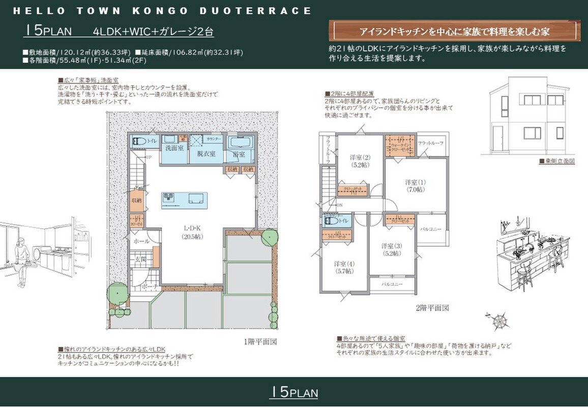| 間取り | 4LDK(15号地) | 建物構造 | 木造在来軸組工法・2階建 |