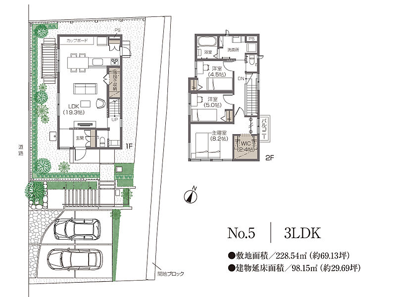 | 建物面積 | 98.15m2~101.5m2 | 土地面積 | 222.13m2~228.54m2 |