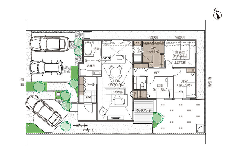 - ※完成予想図やCG合成画像は、門塀・植栽・庭・外観等、実際とは多少異なる場合があります。