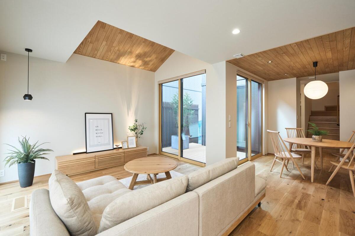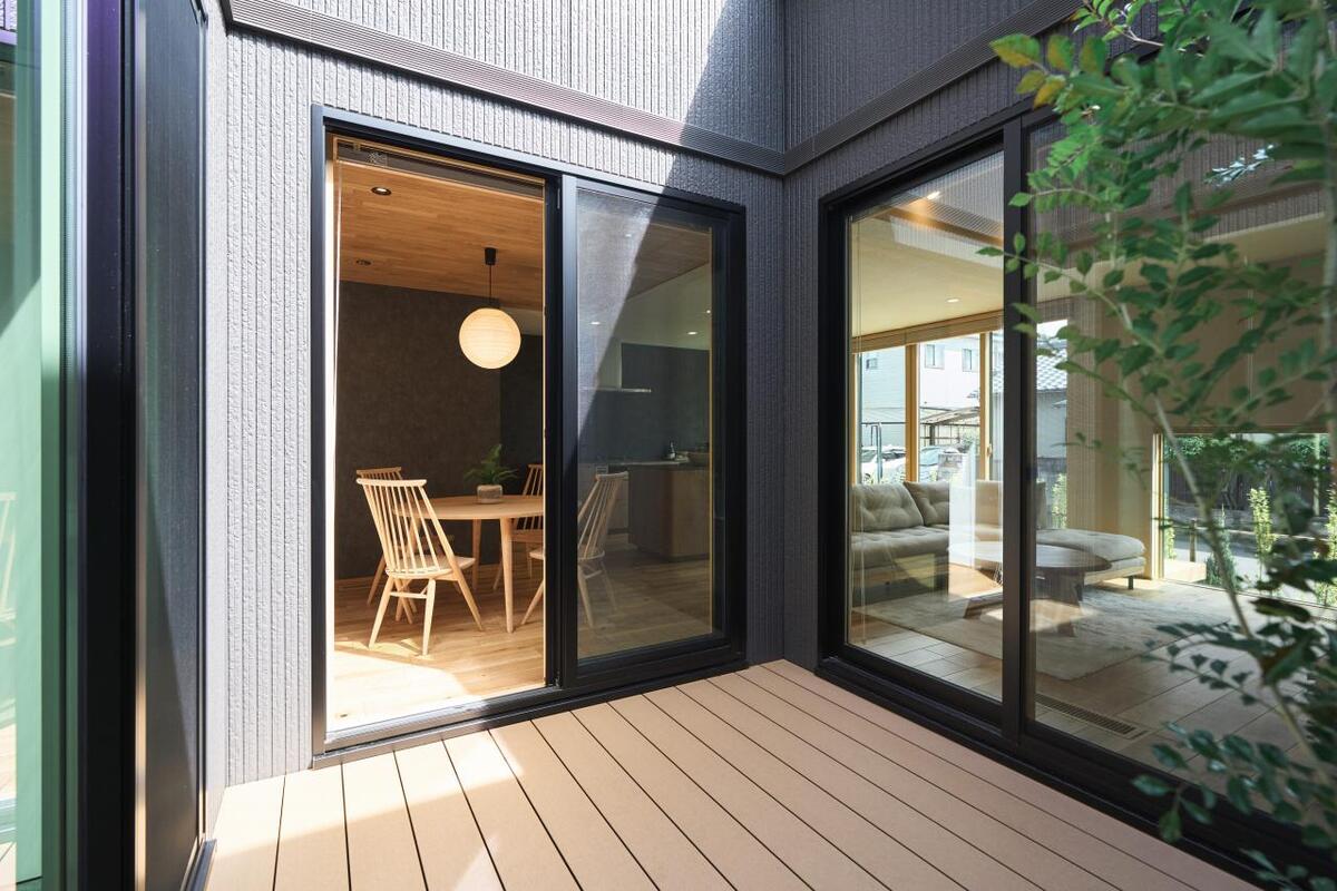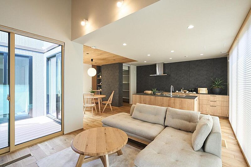■木の素材感を活かした設えが、自然感じる暮らしを叶えます■収納・家事動線を工夫することで、片付け上手な住まいを実現しました ■3方向からアクセスできる中庭が、邸内に光を届けます