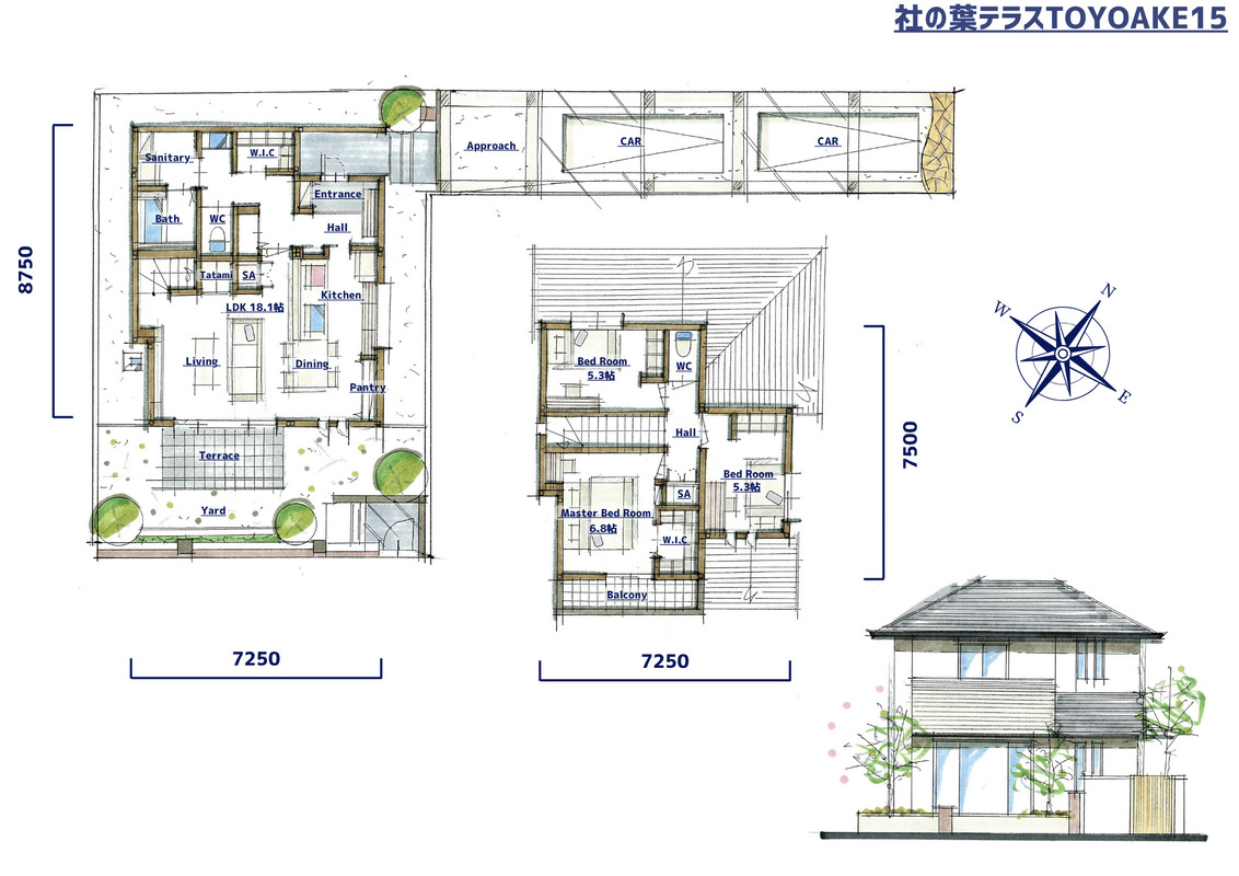 | 建物面積 | 97.47m2(29.5坪)~101.13m2(30.6坪) | 土地面積 | 160.18m2(48.5坪)~179.18m2(54.2坪) |