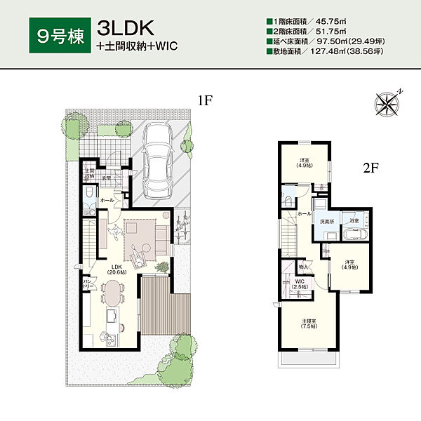 | 建物面積 | 97.5m2~97.5m2 | 土地面積 | 127.48m2~127.53m2 |