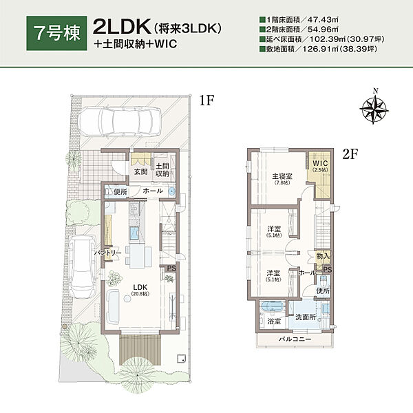 | 建物面積 | 102.39m2 | 土地面積 | 126.91m2 |