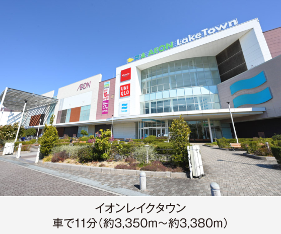 イオンレイクタウン (現地から3350m~3380m。 車で11分。(最長))