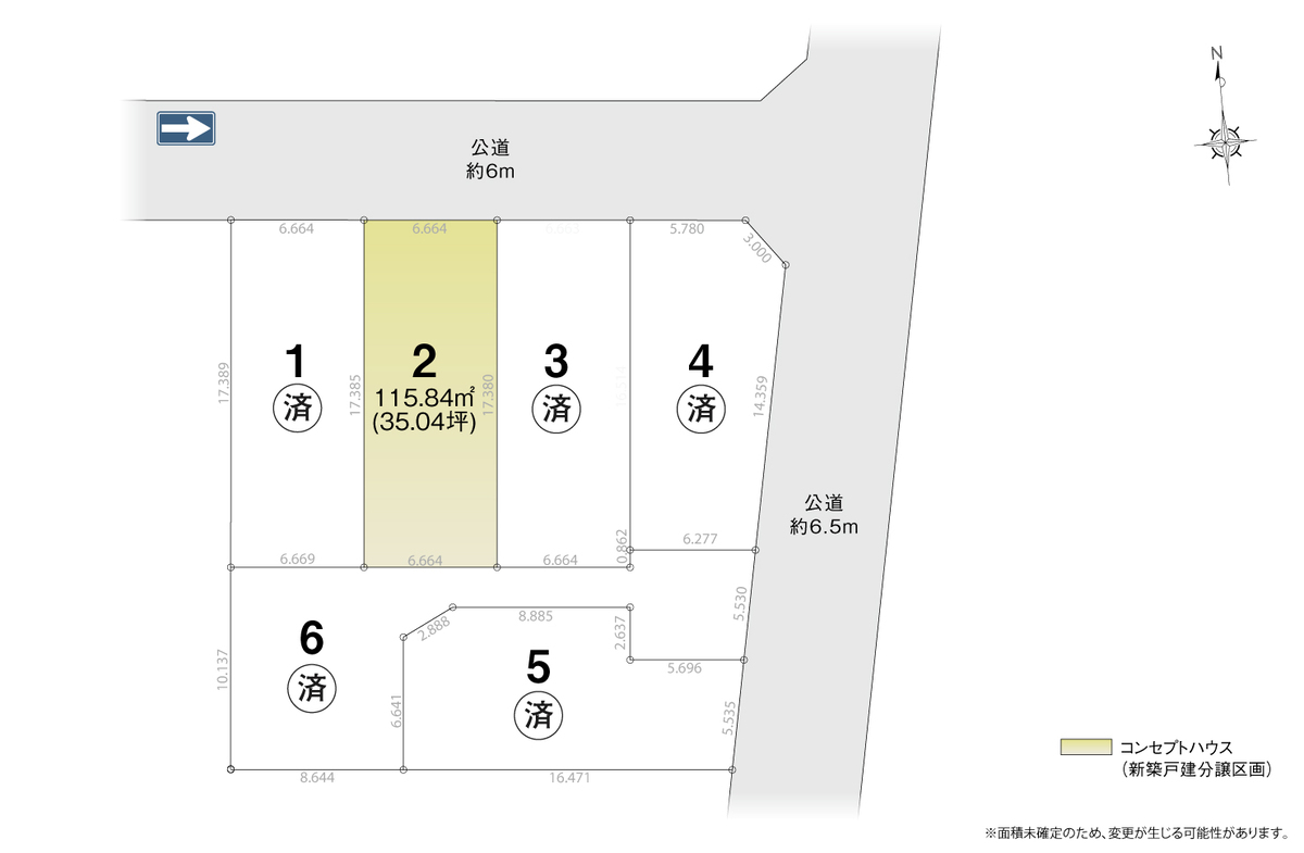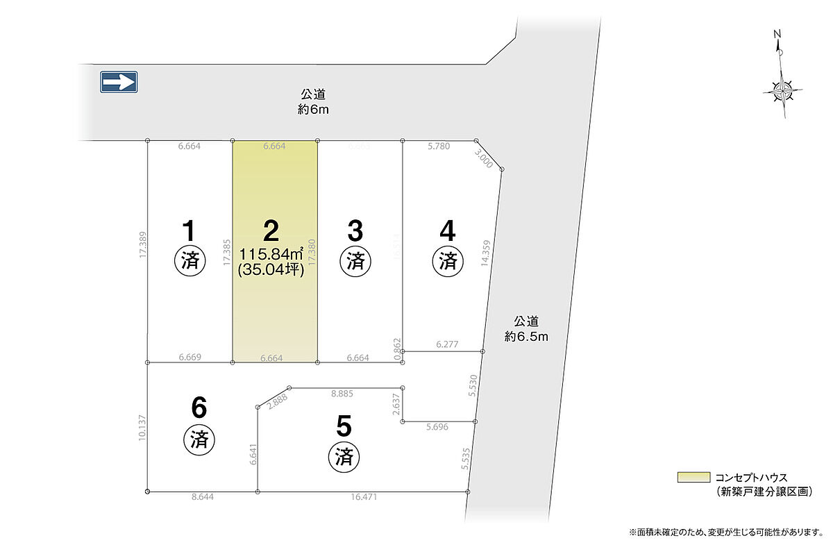 | 駐車場 | 2台 | 道路の幅員 | 東側公道約6.5m、北側公道約6m |