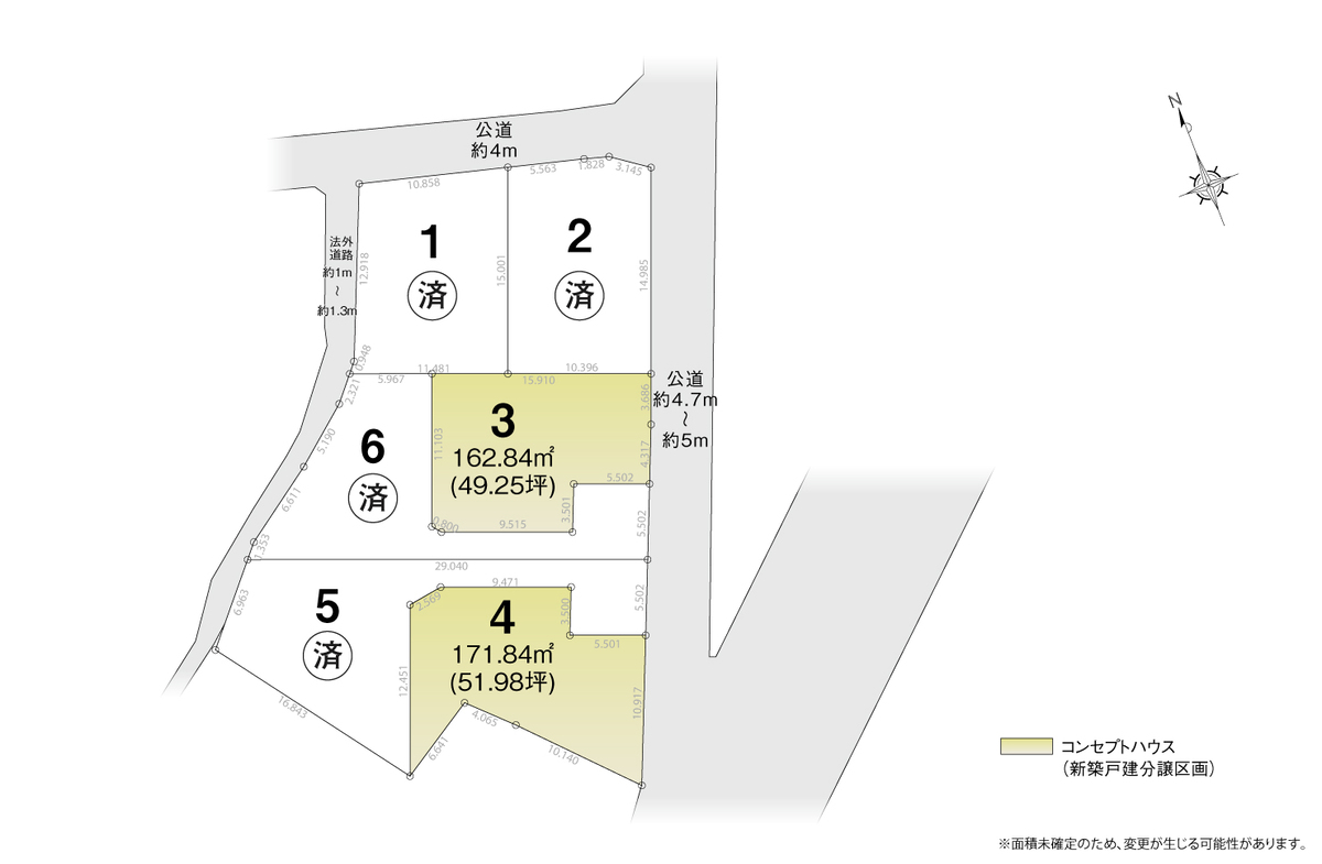 | 完成予定日 | 2025年10月(4区画)、2026年2月予定(3区画) | 引き渡し可能年月 | 即引渡可(4区画)、2026年2月予定(3区画) |
