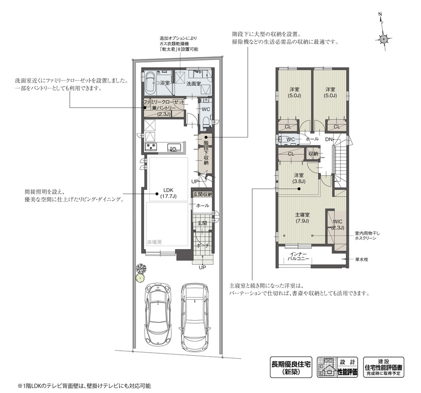 - ※完成予想図やCG合成画像は、門塀・植栽・庭・外観等、実際とは多少異なる場合があります。