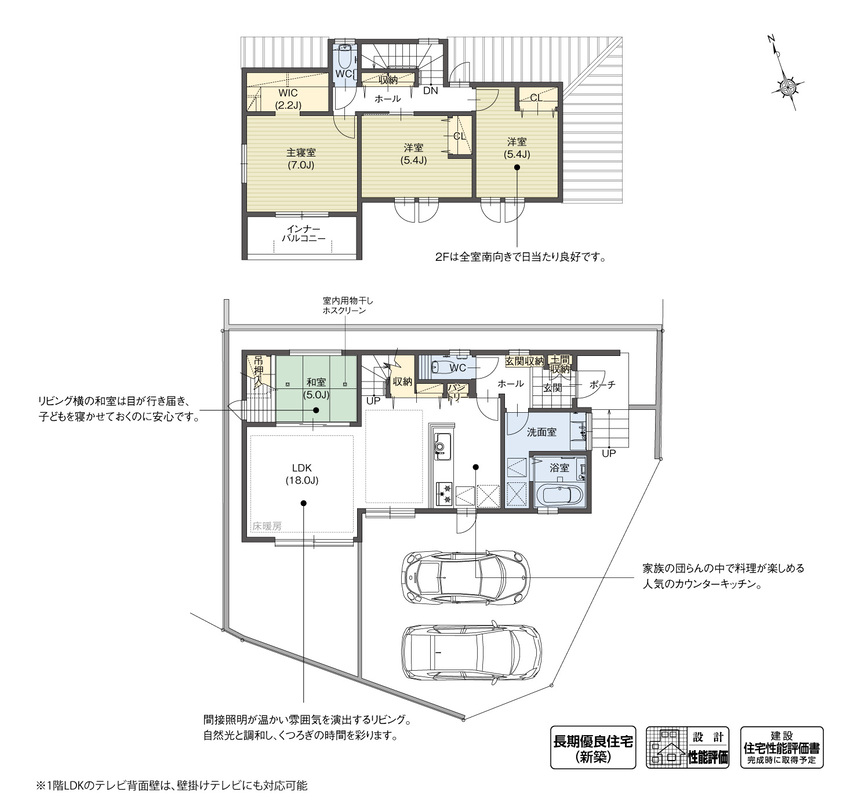 保育園や小学校、緑豊かな公園も近く、子育て家族に嬉しい住環境です。AREXの建築家がデザインしたコンセプトハウス「温かな家」「のびのび暮らせる家」2邸。「温かな家」は、