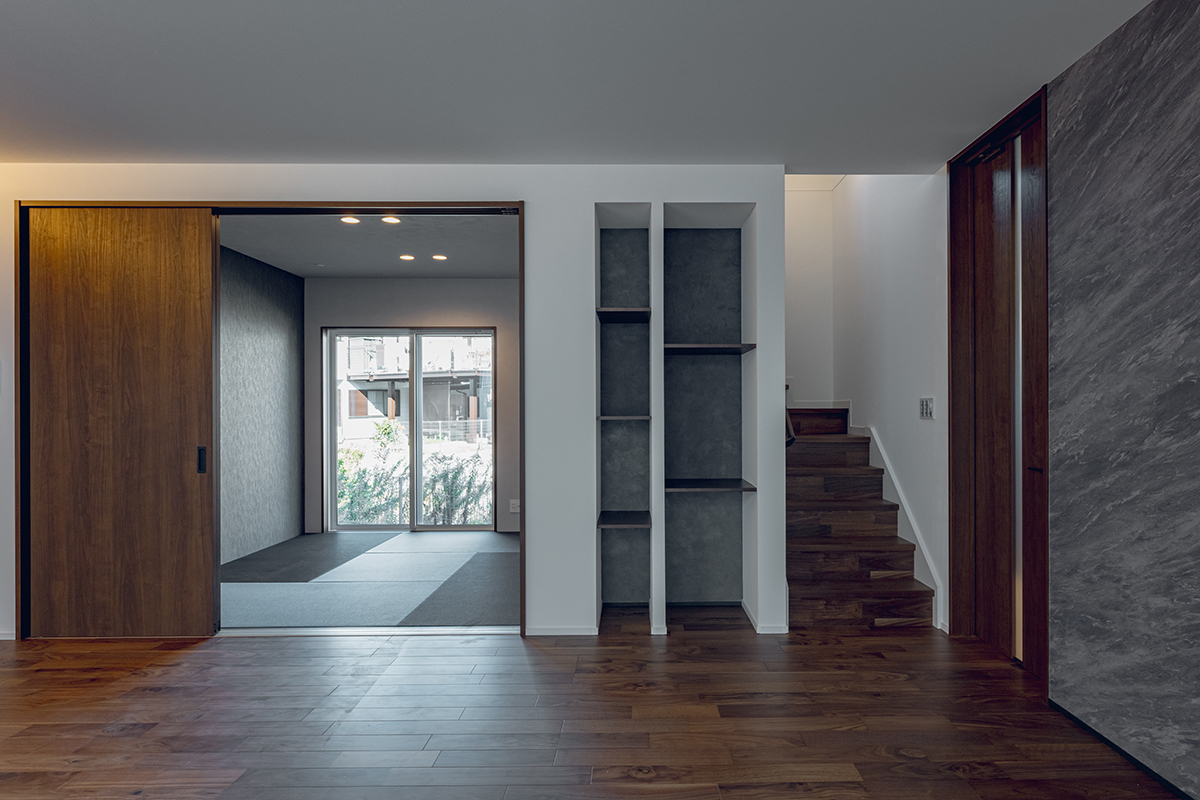 生活利便施設も近隣に揃った暮らしやすい住環境です。AREXの建築家がデザインしたコンセプトハウス「家族団らんを楽しむ家」など3邸、堂々完成です。「家族団らんを楽しむ家」は、LDKと続き間の和室や、