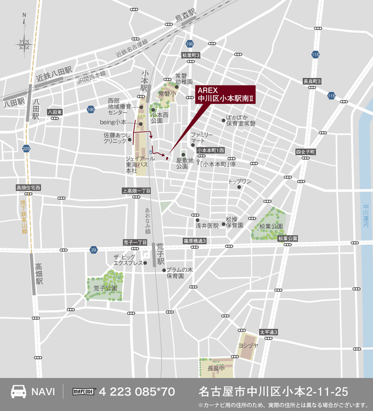名古屋臨海高速あおなみ線「小本」駅 徒歩7分 近鉄名古屋線「烏森」駅 徒歩12分 名古屋市営東山線「八田」駅 徒歩13分 |