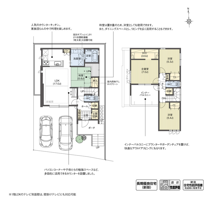 - ※完成予想図やCG合成画像は、門塀・植栽・庭・外観等、実際とは多少異なる場合があります。