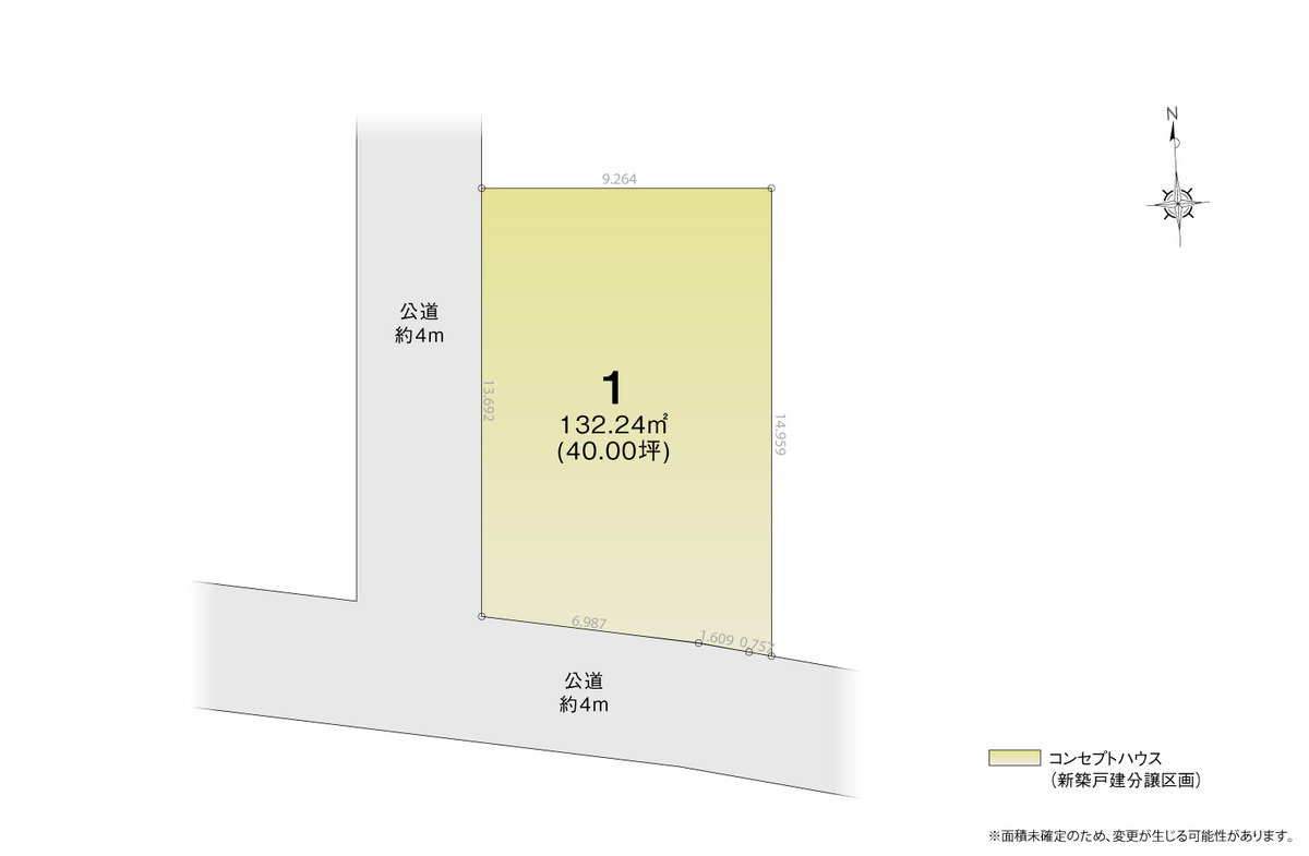 | 駐車場 | 2台 | 道路の幅員 | 南側公道約4m、西側公道約4m |