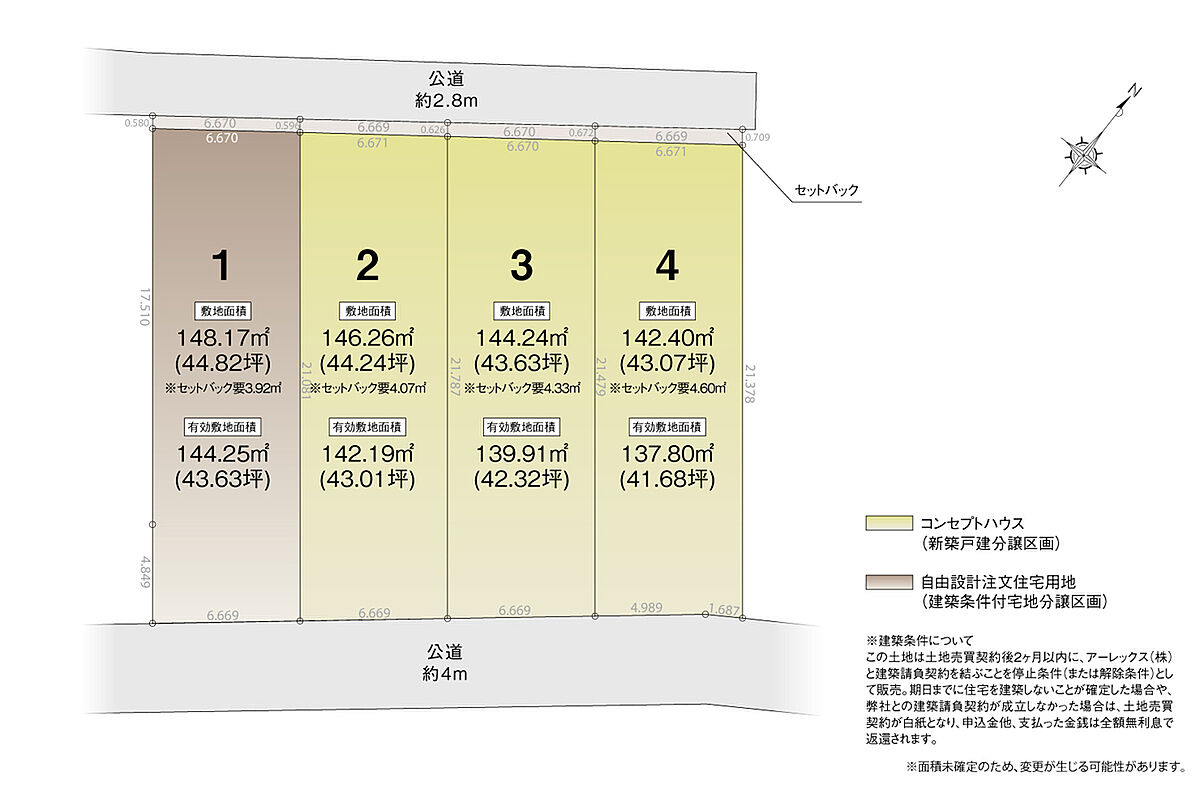 | 建物面積 | 101.45m2(30.68坪)~106.50m2(32.21坪) | 土地面積 | 142.40m2(43.07坪)~146.26m2(44.24坪) |