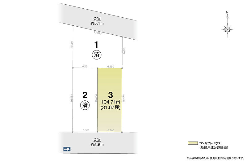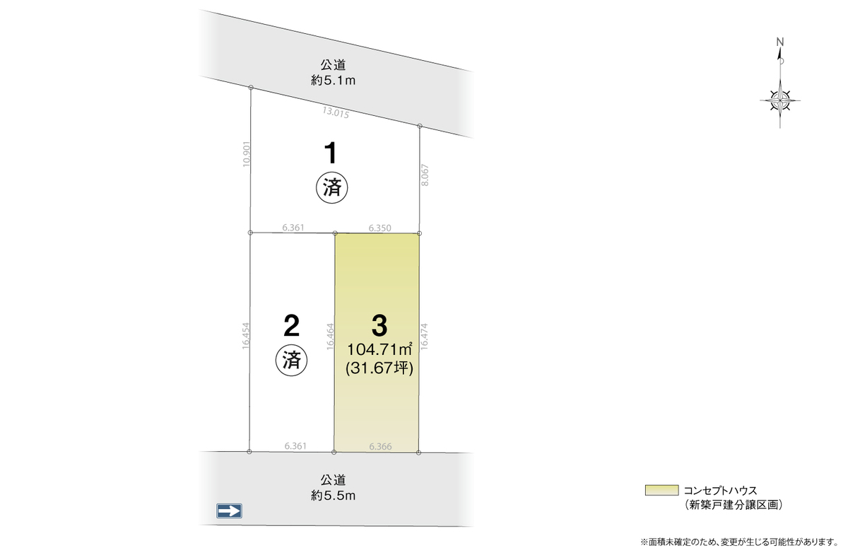 | 駐車場 | 2台 | 道路の幅員 | 南側公道約5.5m、北側公道約5.1m |