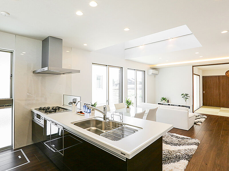 周辺には緑豊かな公園が多く、保育園や小学校が近くに揃った子育て家族に嬉しい住環境です。AREXの建築家がデザインしたコンセプトハウス「料理を楽しむ家」最終1邸です。L型のフラットキッチンを採用し、