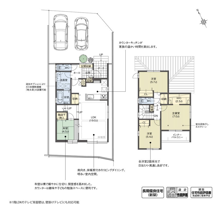 | 建物面積 | 102.69m2(31.06坪)・104.22m2(31.52坪) | 土地面積 | 149.21m2(45.13坪)・160.05m2(48.41坪) |