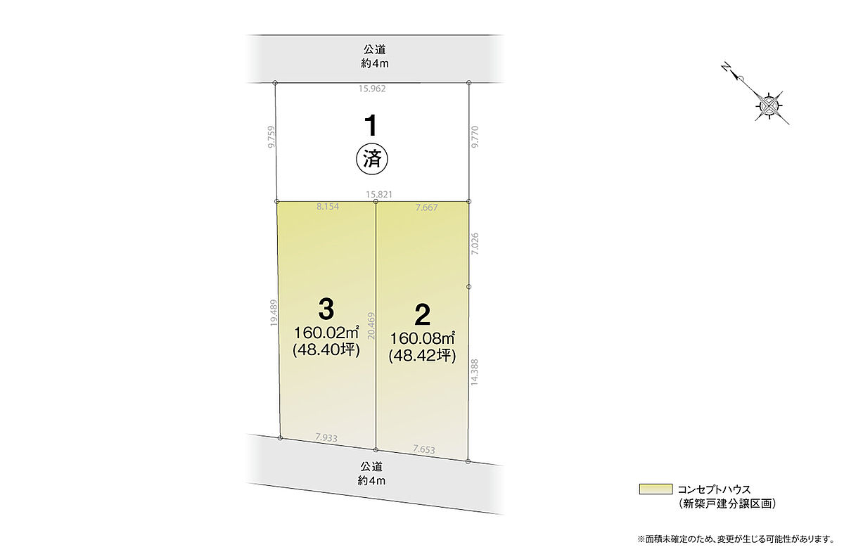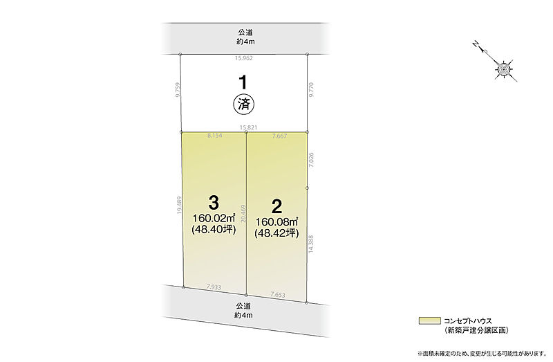 | 建物面積 | 102.28m2(30.93坪) | 土地面積 | 160.02m2(48.40坪)・160.08m2(48.42坪) |