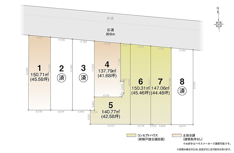| 完成予定日 | 2026年4月予定(5・6・7区画) | 引き渡し可能年月 | 2026年4月予定(5・6・7区画) |