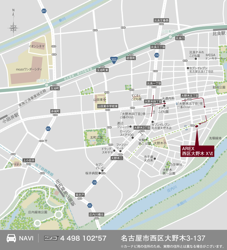 名古屋市営鶴舞線「庄内緑地公園」駅 徒歩19分 JR東海交通城北線「比良」駅 徒歩13分 |
