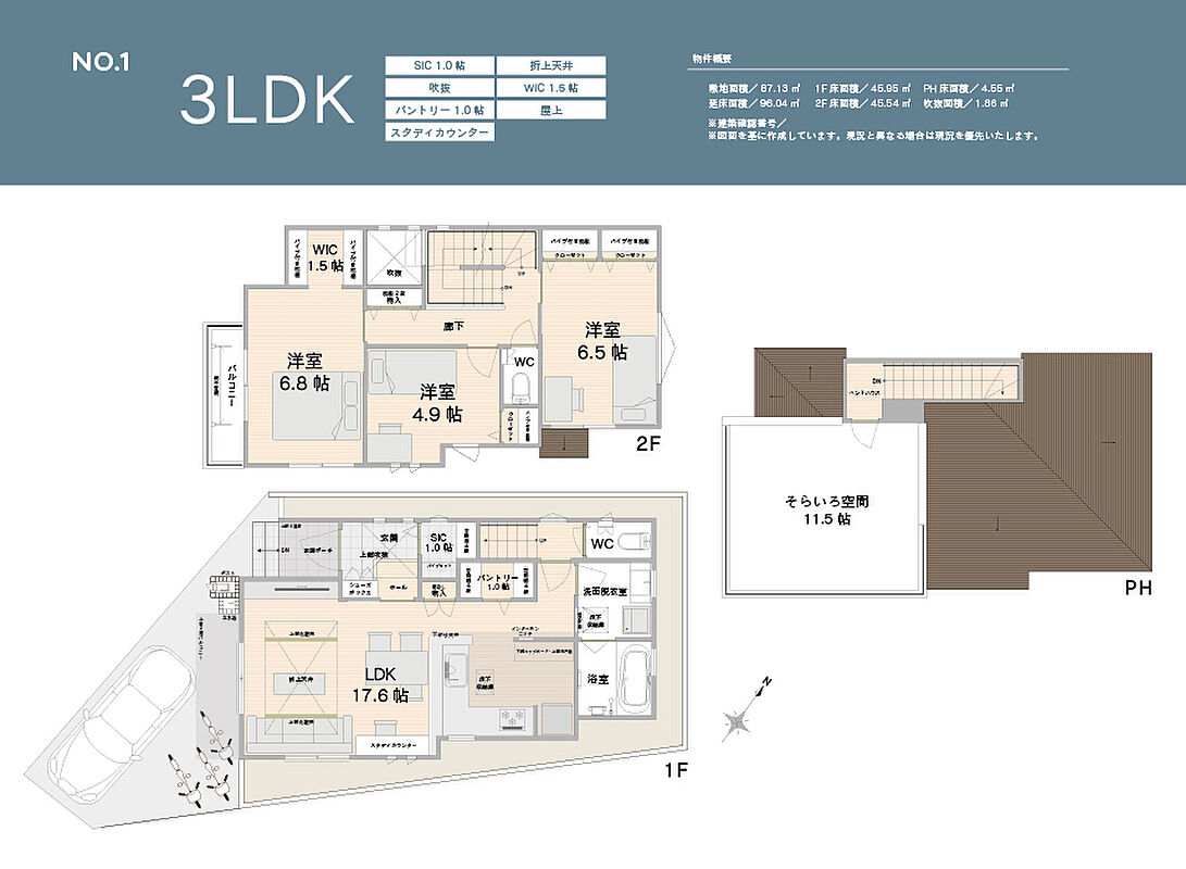 | 建物面積 | 94.39m2・96.04m2 | 土地面積 | 80.53m2・87.13m2 |