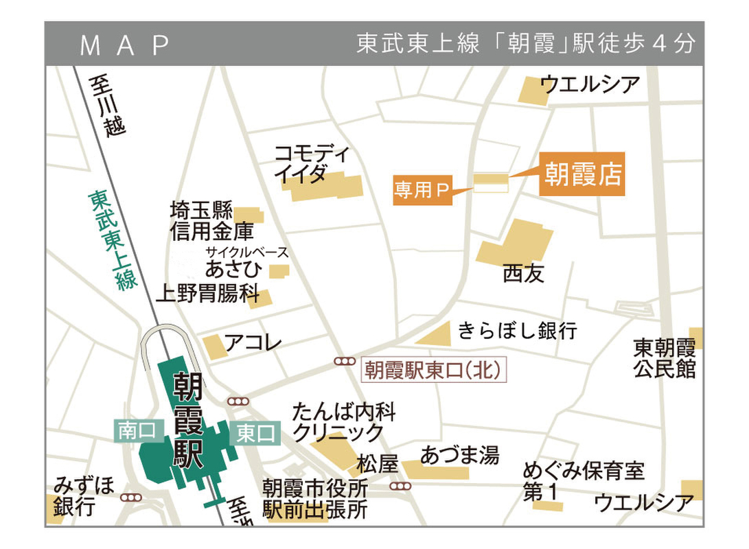 東武東上線「朝霞」駅 バス11分『花の木』バス停 徒歩3分 |
