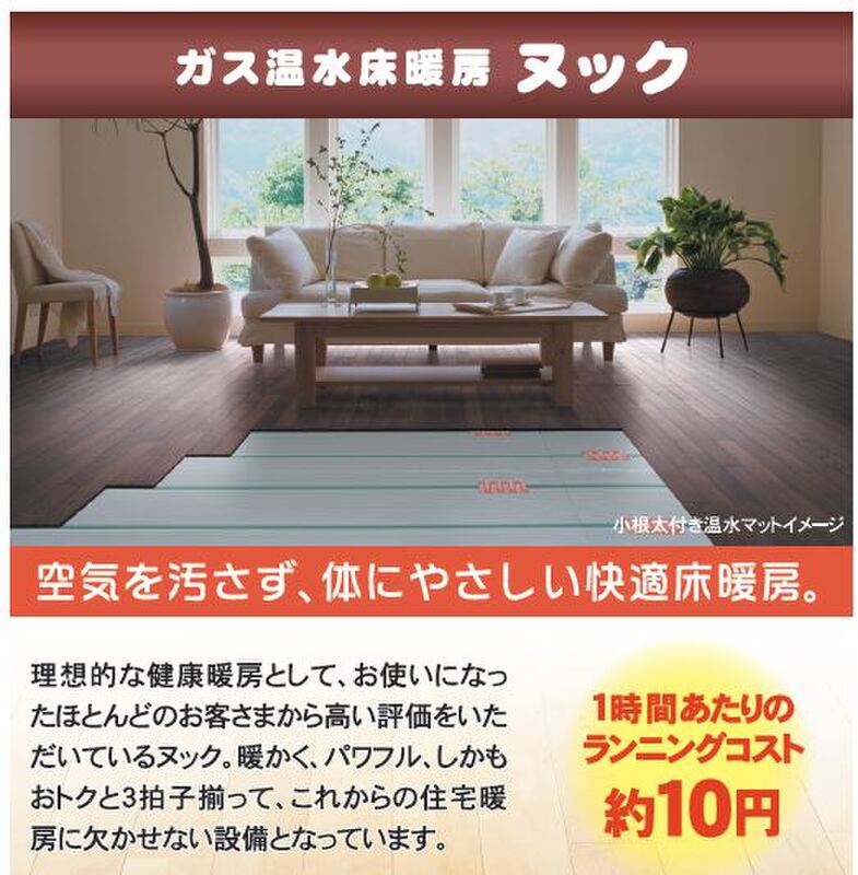 ガス温水床暖房「ヌック」を標準装備。温か...