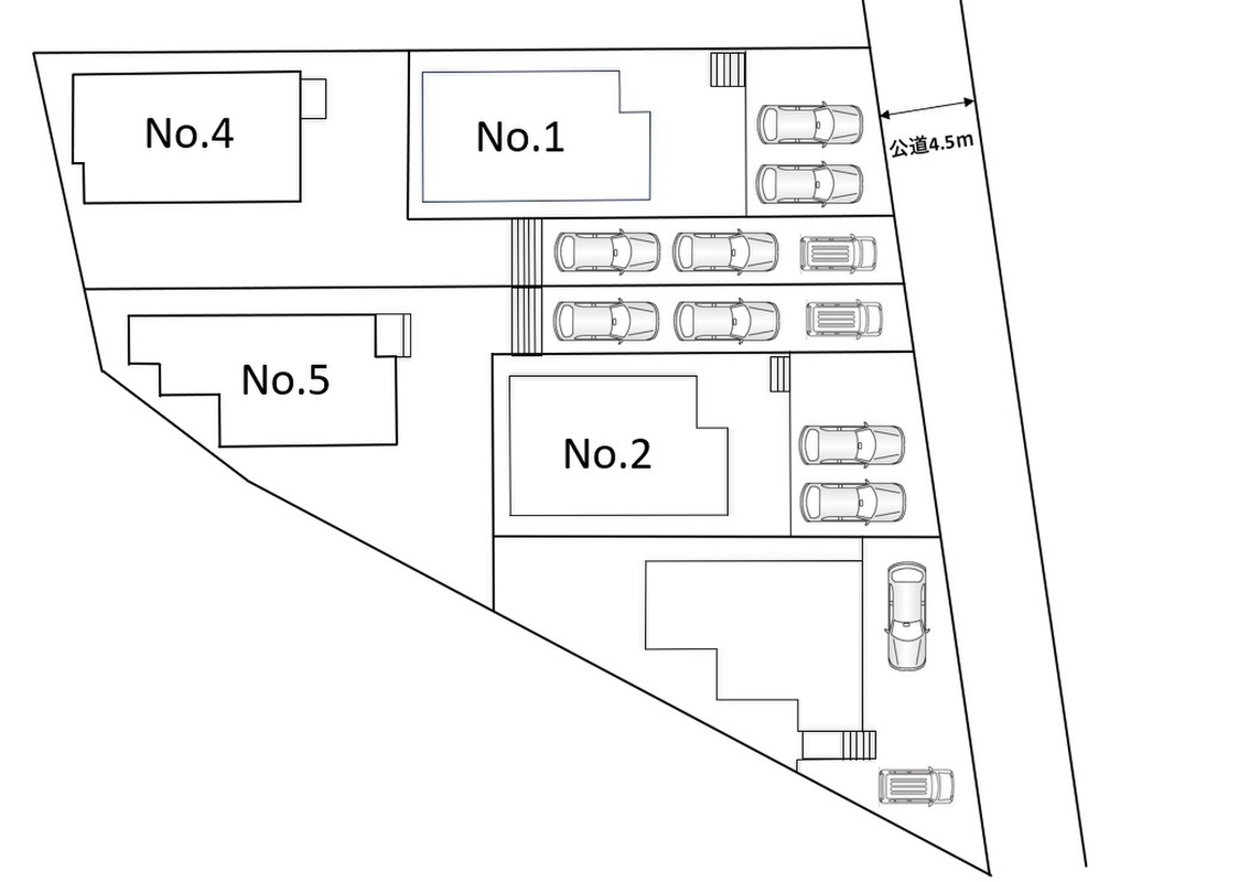 | 駐車場 | 2台 ~ 3台 | 道路の幅員 | 東側4.5m |