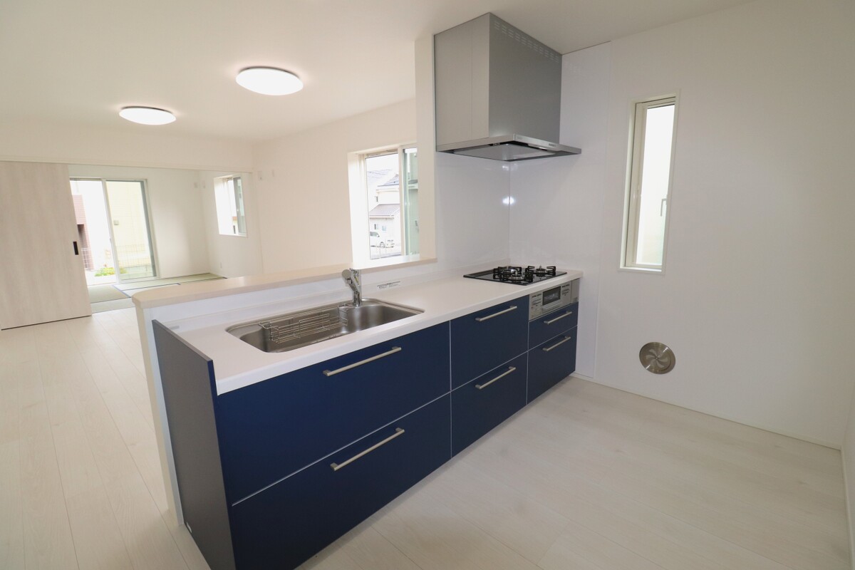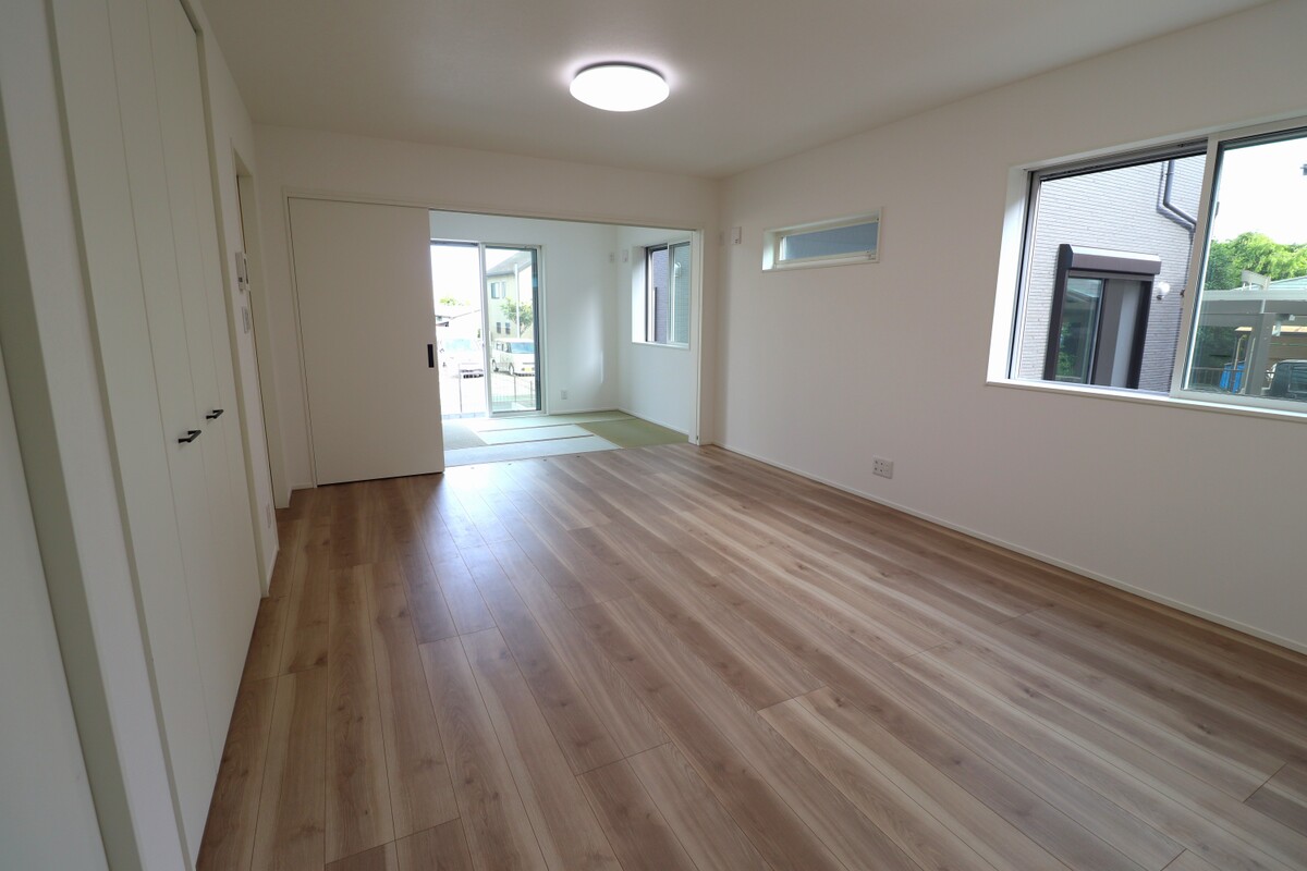 各棟ゆとりのある空間になっております。洗面所空間や、和室とリビングを繋げて広い空間造り、2階廊下のフリースペースなど様々な工夫をしております。