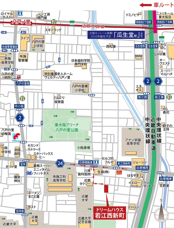 近鉄奈良線「八戸ノ里」駅 徒歩19分 近鉄奈良線「河内小阪」駅 徒歩28分 近鉄奈良線「若江岩田」駅 徒歩29分 |