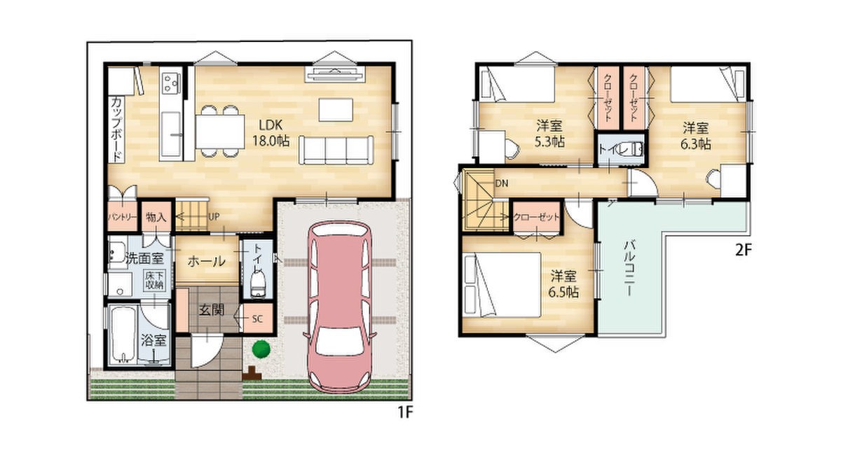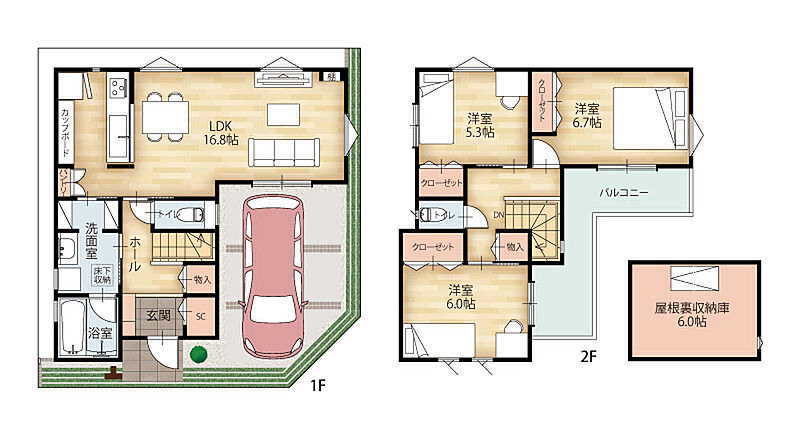 - ※完成予想図やCG合成画像は、門塀・植栽・庭・外観等、実際とは多少異なる場合があります。