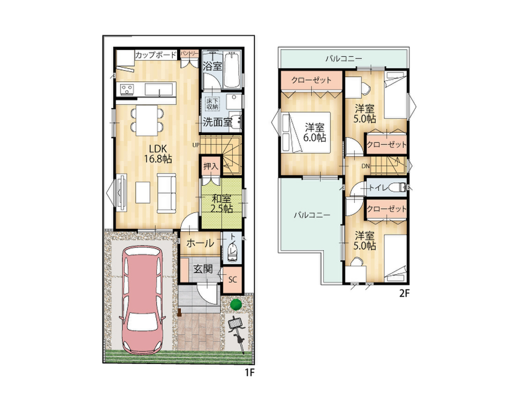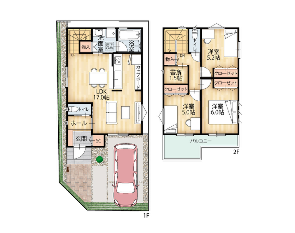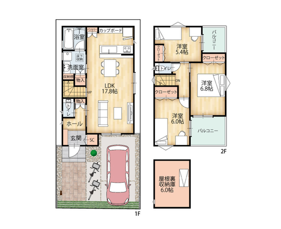 - ※完成予想図やCG合成画像は、門塀・植栽・庭・外観等、実際とは多少異なる場合があります。