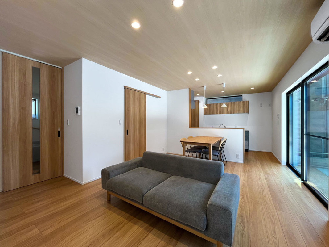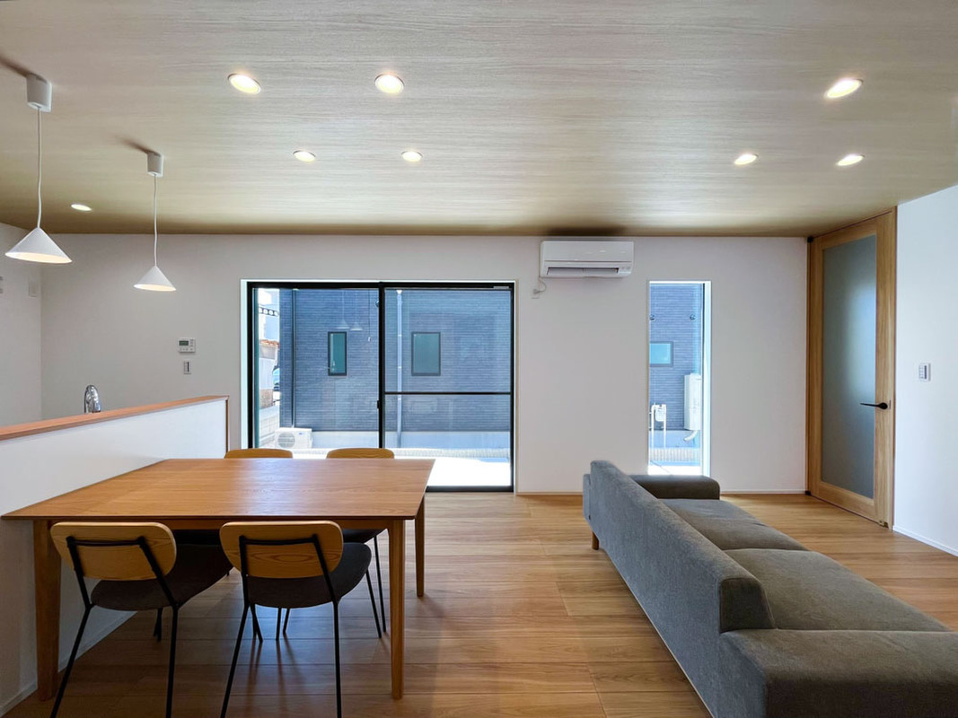明るい木目柄を主体とした、自然のぬくもりを感じる爽やかな一邸。