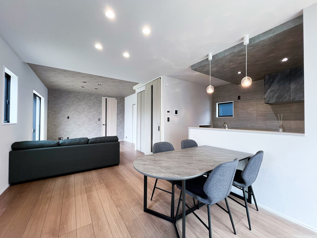 見るだけOK!【家具付&太陽光標準】ホテルライクな高天井リビングの家/敷地43坪×並列駐車2台可!ルンバ基地など家事ラク工夫満載の4LDK