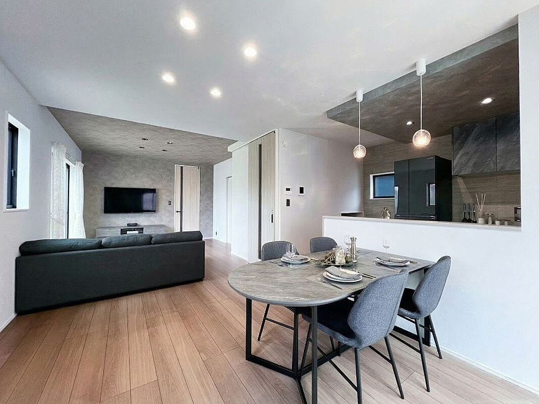 【家具付&太陽光標準】ホテルライクな高天井リビングの家/敷地43坪×並列駐車2台可!ルンバ基地など家事ラク工夫満載の4LDK