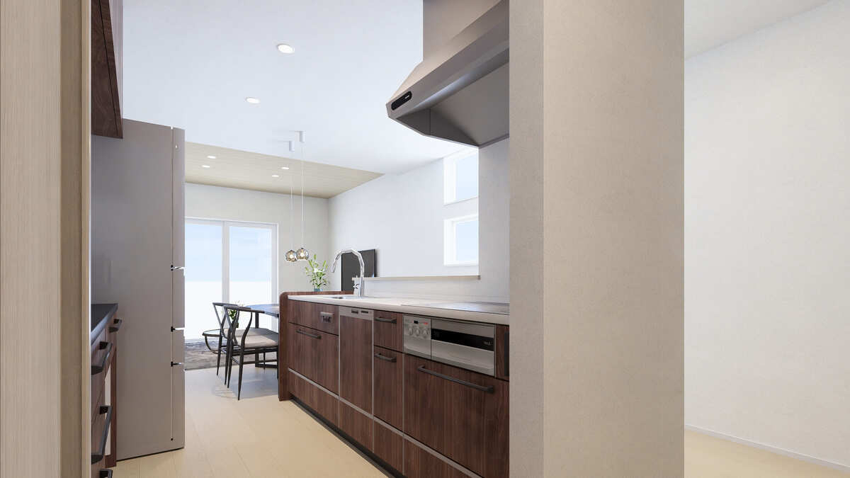 【B-1棟】家事のしやすい壁付けキッチン& 水回り回遊動線
