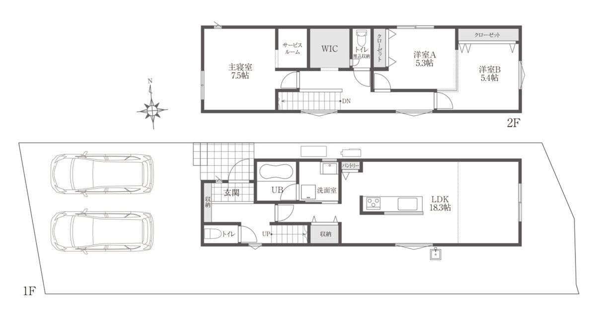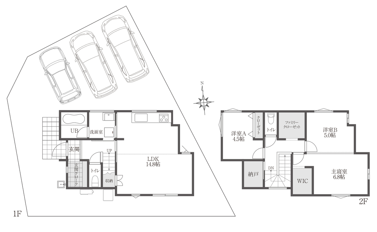 | 建物面積 | 【B-1棟】85.90m2、【B-3棟】97.29m2 | 土地面積 | 132.72m2(B-1棟)~149.30m2(B-3棟) |