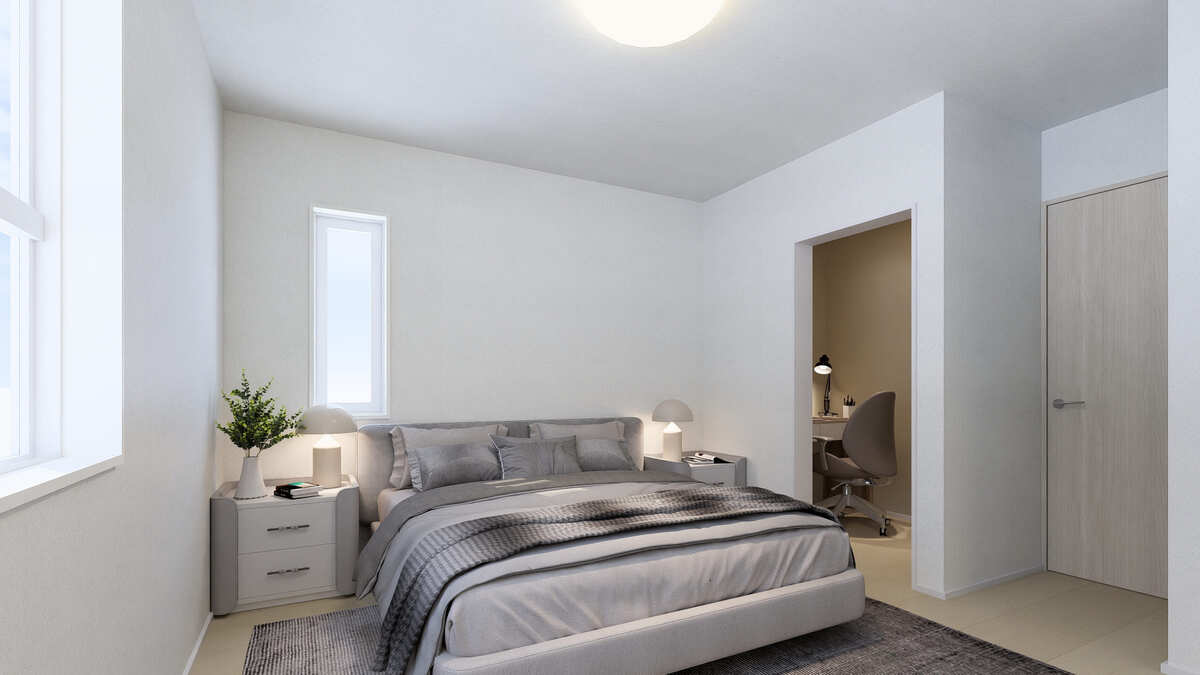 主寝室とつながったサービスルームは、約1.5帖の空間にデスクを...